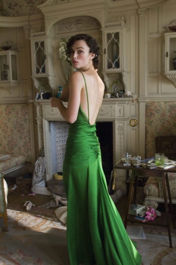これまで、映画に登場する印象的な緑色のドレスといえば、『風と共に去りぬ』でスカーレット・オハラが着た、カーテンから作られたドレスだった。だがこれから「緑色のドレス」といえば、キーラ・ナイトレイが『つぐない』で着たこのドレスを指すことになるだろう。