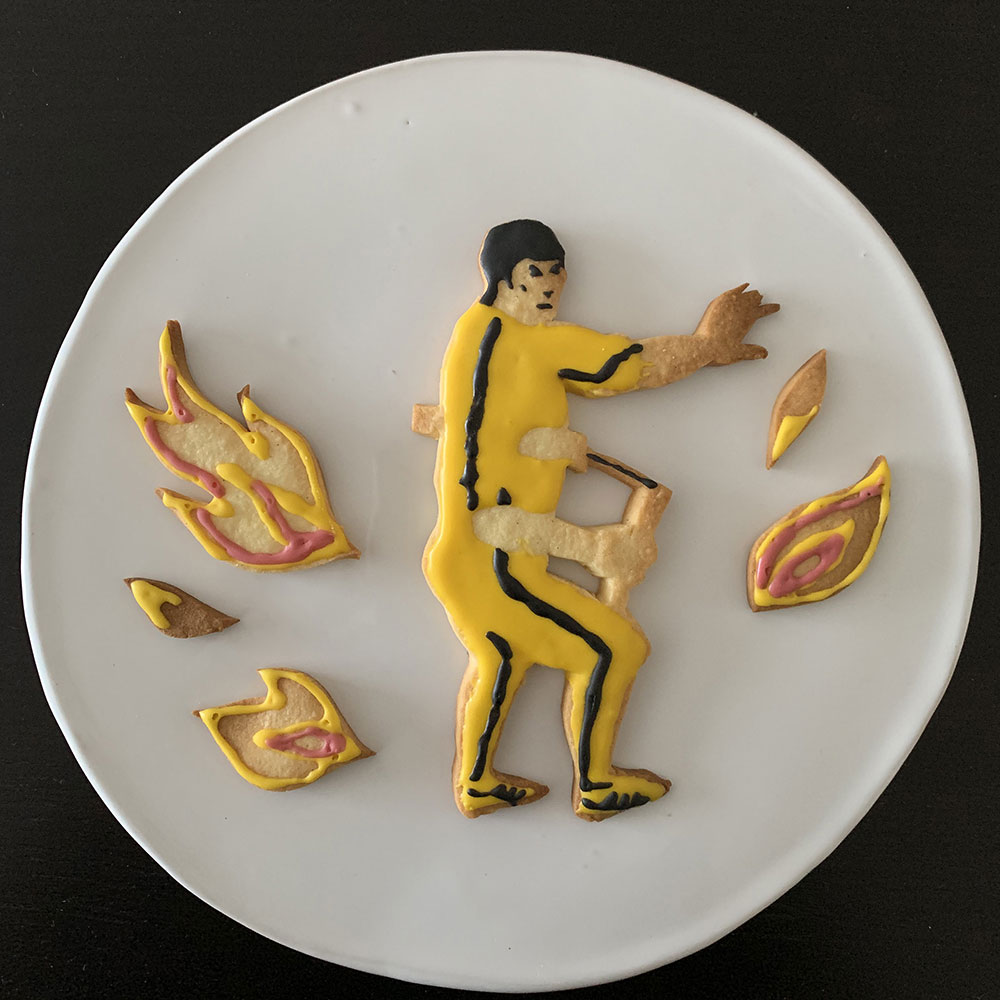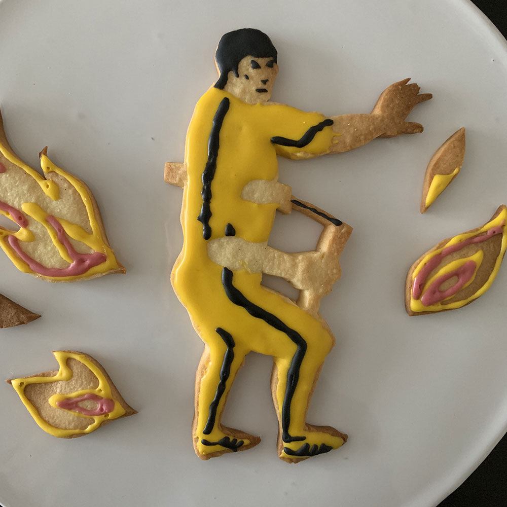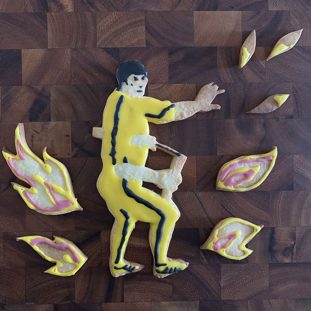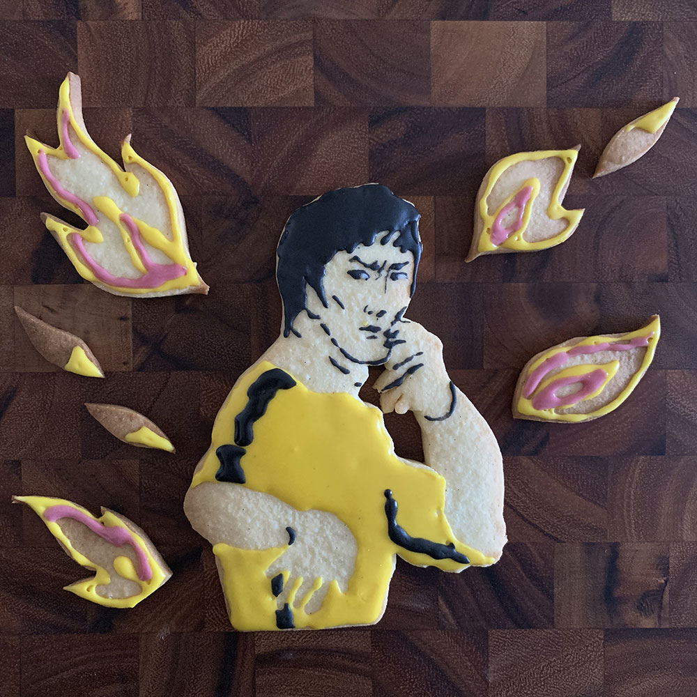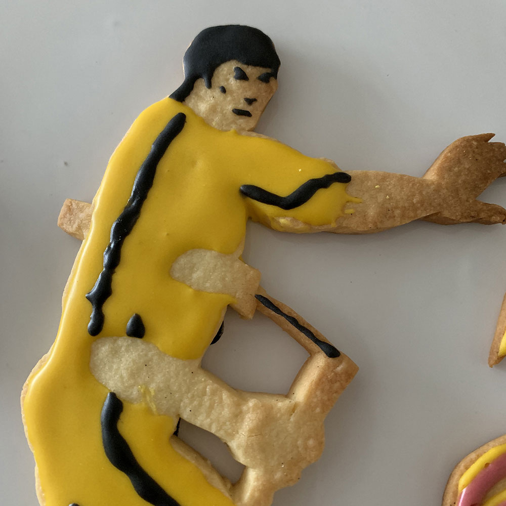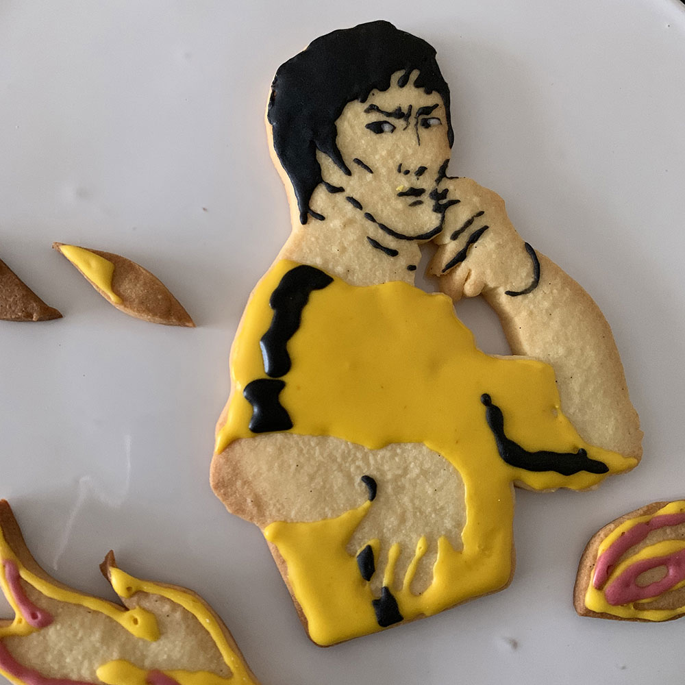 実はクッキーアートで作りたいセレブの上位がブルース・リーなのでした。気合いを入れ鼻息を荒くしながら製菓店でアイシング用の黄色い着色料を手に取ったのです。